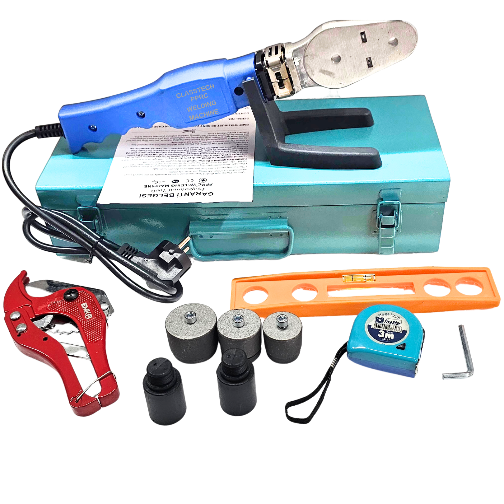 Classtech PPRC Boru Kaynak Makinesi, yüksek performansı ve sağlam yapısıyla PPRC boruların birleştirilmesinde pratik çözümler sunar. Dar köşeler ve çalışılması zor alanlar için özel olarak üretilmiştir. Hem bireysel kullanıcılar hem de ustalar için uygundur.