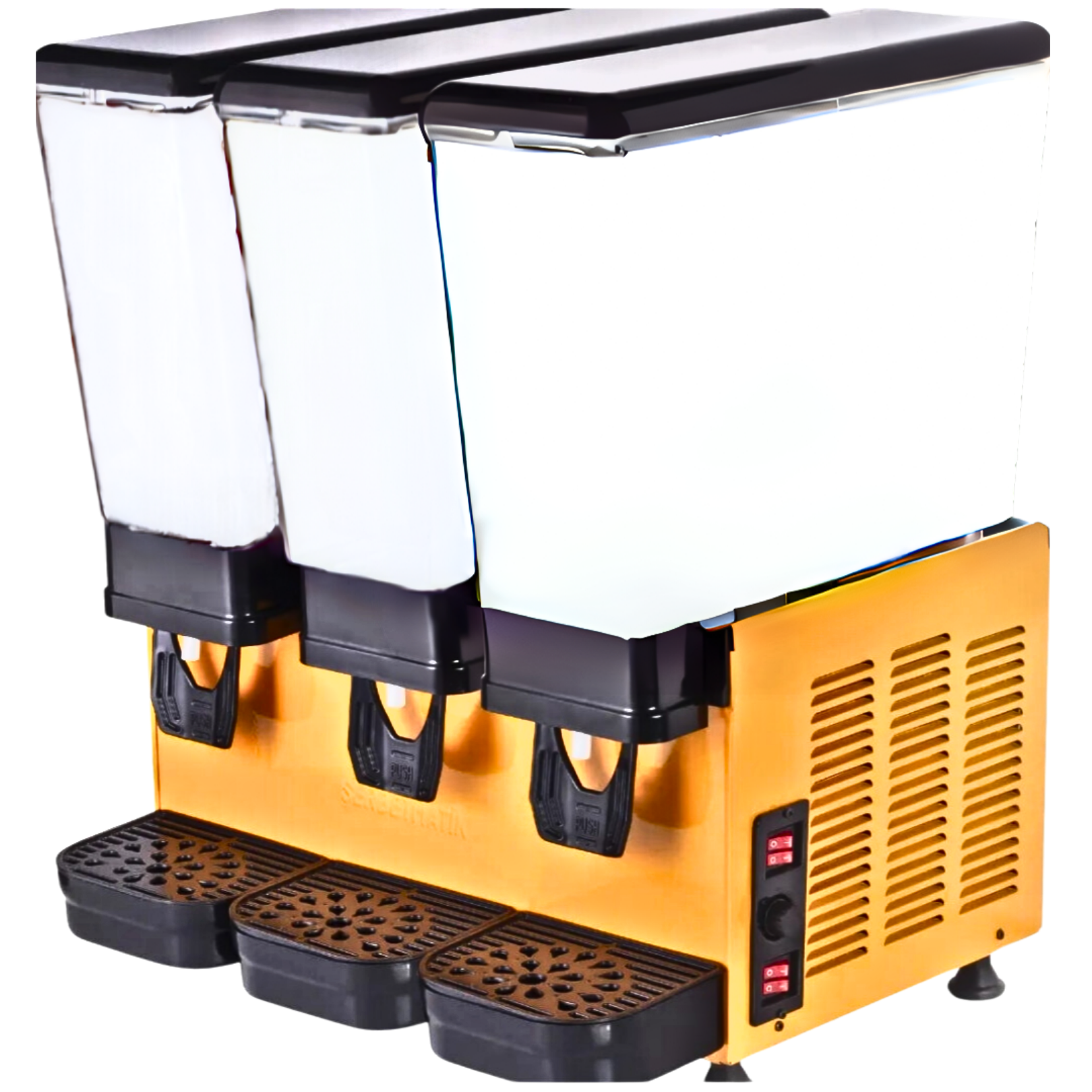 Şerbetmatik Üçlü 20+20+20=60 Litre Karıştırıcılı Ayran Makinesi, ayran, şerbet, limonata, şalgam ve doğal meyve sularının soğutulması ve servisi için tasarlanmış tezgah üstü profesyonel içecek dispenseridir.