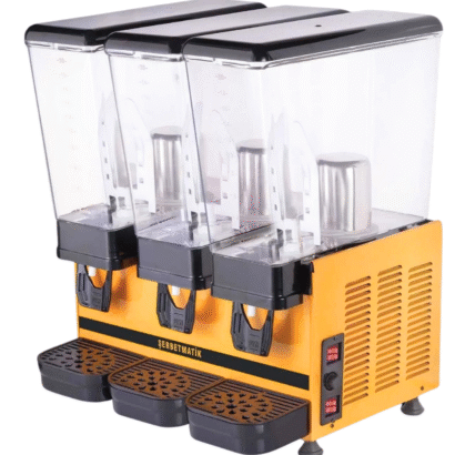 Kafe, restoran, büfe ve işletmeler için özel olarak tasarlanmış Üçlü ayran makinesi, güçlü soğutma ve paletli karıştırma sistemi sayesinde içecekleri gün boyu homojen, soğuk ve hijyenik şekilde sunmanızı sağlar..